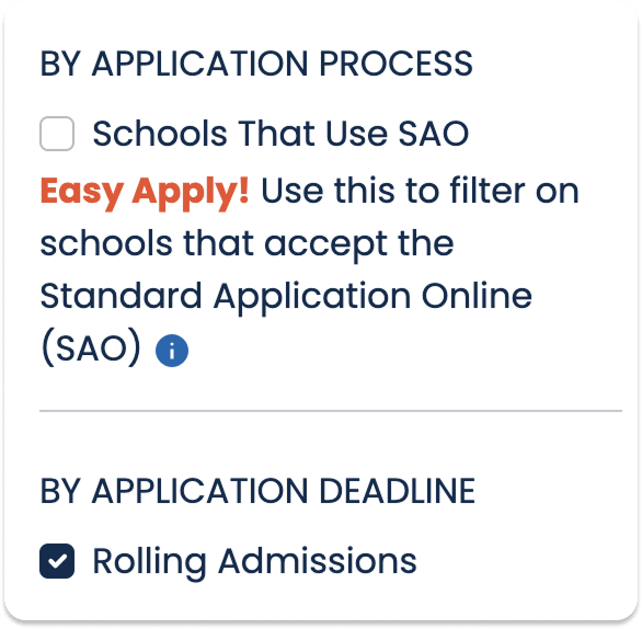 Rolling Admissions: How do schools display in this Admission.org Search filter?